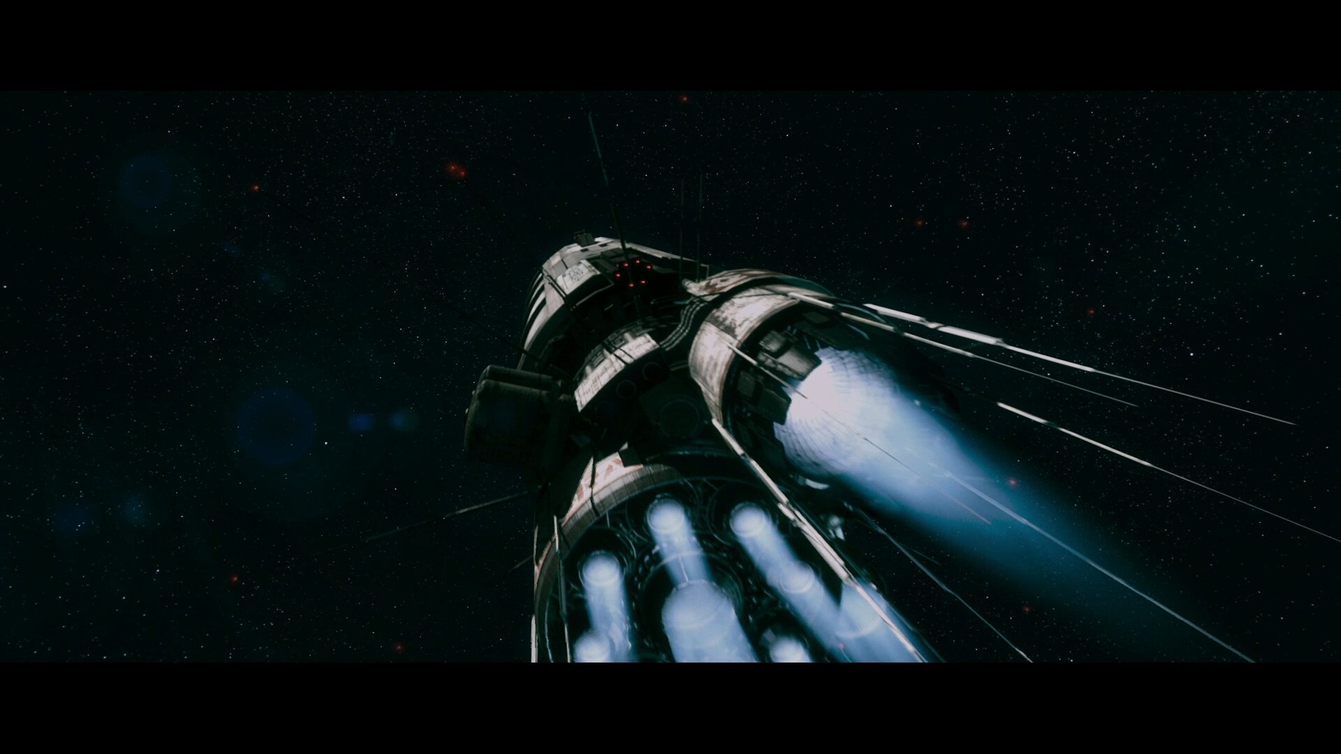 Блин в начале фильма рассказывали про компанию, создающую биологических роботов, я думал, ну не просто так же. Сразу вспомнился отличнейший фильм «Космические дальнобойщики». Продолжаем о нашем фильме. В фильме, во время полета грузового корабля, все время слышатся какие-то стуки и скрежеты, даже тени видны, по началу, мне казалось, что по всему кораблю перемещаются какие-то монстры в виде «Чужих» или те роботы, о которых говорилось в начале. Мало ли они покинули контейнеры в грузовом шлюзе и разбежались по всему кораблю. Я все ждал, когда же появится хоть один монстр! И какое же было мое дикое удивление, когда этим монстром оказался бомжеватого вида террорист, ЧТО? СЕРЬЕЗНО? И ЭТО ВСЕ? Дааа, больше ничего интересного в корабле нету. Весь фильм напрягать скрежетами, шумами, тенями и потом спустить на бомжа, роль которого заканчивается через минуту после начало, ну ребята это фиаско! Сам же сюжет фильма неплохой, но фильм сняли унылый, скучный, повторяюсь, для 2009 года очень, очень слабый фильм…