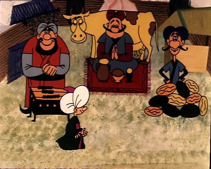 Мультфильм Мук-скороход 1975 смотреть онлайн или скачать торрент бесплатно в хорошем качестве HD. В основу сюжета мультфильма "Мук-скороход" положено мотивы популярной сказки "Маленький Мук", написанной В. Гауфа. Только в отличие от оригинала, мультипликаторы позволили себе несколько вольностей, от которых эта история не стала менее интересней. Одним словом, жил себе на белом свете мальчуган по имени Мук, а когда его родители умерли, мальчика выгнали из родного дома на улицу. Поначалу Мук устроился на службу к старушке-колдунье, которая наняла мальчика для того, чтобы он присматривал за ее любимыми кошками. Но однажды, прихватив волшебные туфли своей хозяйки, позволяющие летать по воздуху, Мук отомстил любительнице котов и ее подопечным за все свои прежние мучения. Так мальчуган стал лучшим скороходом в своем царстве... Узнав. что секрет малыша Мука кроется в старых туфлях, коварный падиших обманом выманил у мальчика его обувь, а самого мальчика выбросил за стены своего замка. В поисках крова и пищи Мук приблудился в лес, где росли волшебные ягоды. Если отведать одних, то у человека вырастают большие уши и крючковатый нос, а от других все возвращается в норму. Насобирав две корзинки волшебных ягод, Мук отправился обратно к падишаху, чтобы отомстить своему обидчику. Удастся ли Муку перехитрить коварного правителя?