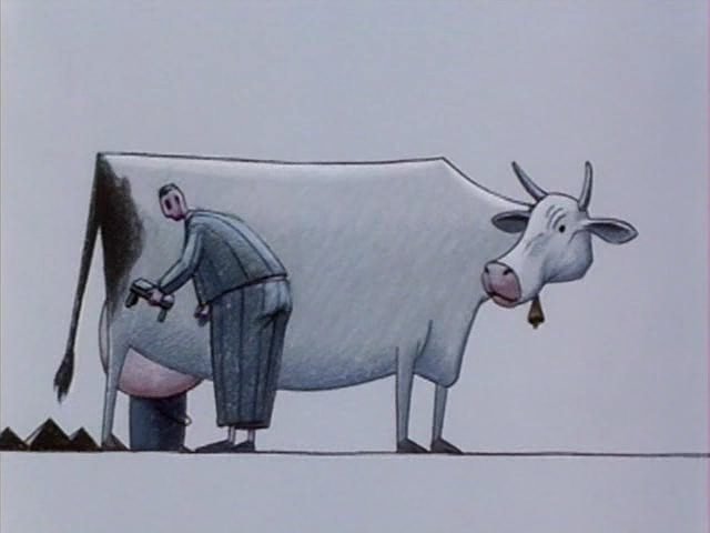 Мультфильм Бессонница (Bezmiegs) (2004) смотреть онлайн или скачать торрент бесплатно в хорошем качестве HD. Изящный абсурдистский фильм, герой которого по ночам в альпинистском снаряжении залезал на крышу небоскреба, чтобы подоить там корову, чье молоко так любила девушка - бессонница. Приз за лучший дебют международного фестиваля анимационных фильмов в Загребе в 2006 году.